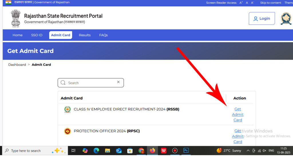यहां आपको “Get Admit Card” का ऑप्शन मिलेगा।